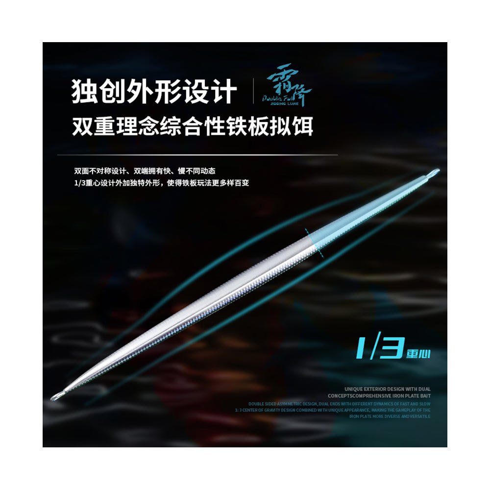 Ο ECOODA Double Fall 45gr είναι ένας πλάνος σχεδιασμένος για μέγιστη απόδοση στο slow jigging, προσφέροντας διπλή δράση (double action) που προκαλεί έντονα ακόμη και τα πιο επιφυλακτικά ψάρια. Το ιδιαίτερο ασύμμετρο σώμα του δημιουργεί έναν συνδυασμό από αργή πτώση, δονήσεις και απρόβλεπτες πλευρικές κινήσεις, μιμούμενο τέλεια ένα πληγωμένο μικρόψαρο.