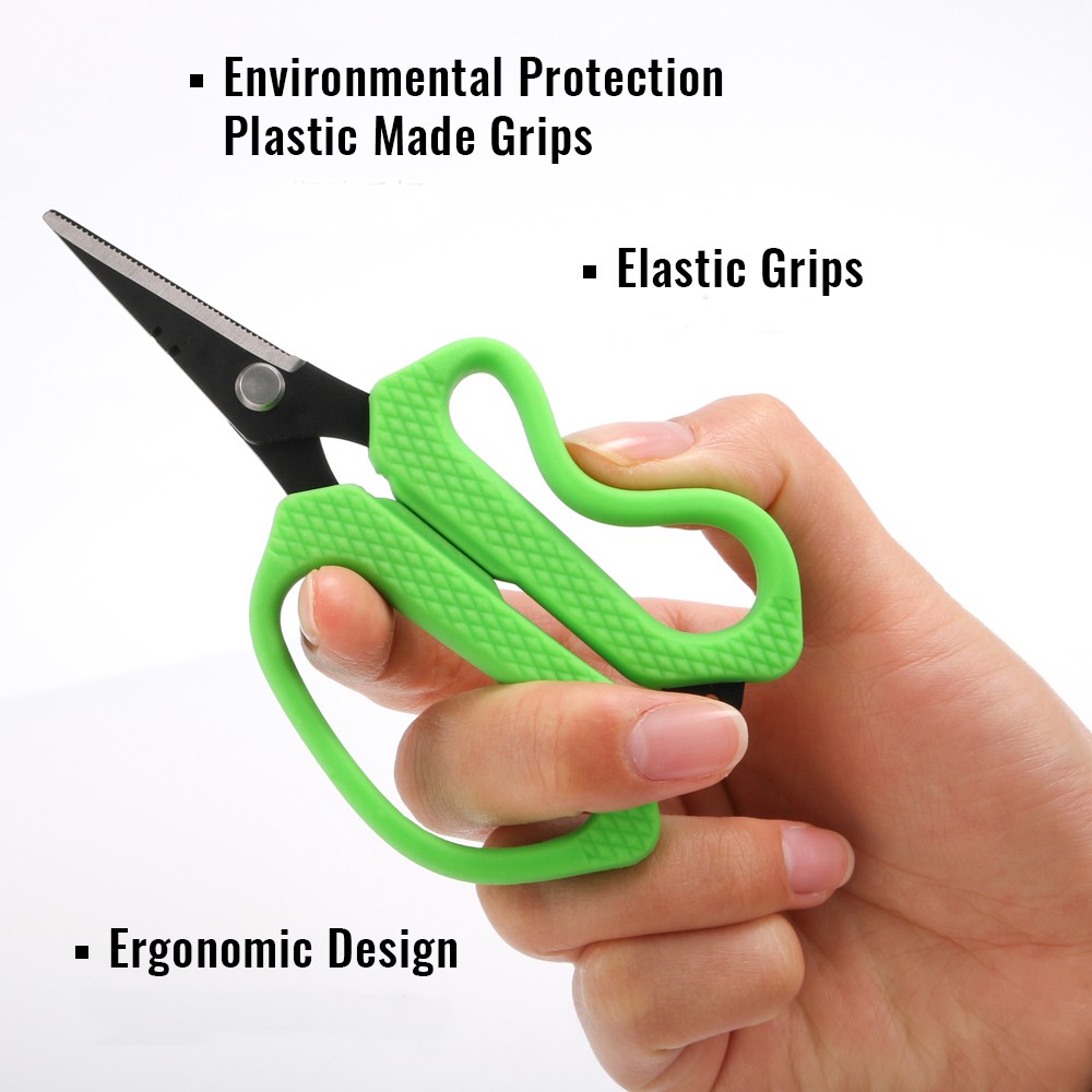 Η πριονωτή ακμή εξασφαλίζει ευκολία και ακρίβεια στην κοπή, ενώ οι πράσινες εργονομικές λαβές από οικολογικό πλαστικό παρέχουν σταθερό και άνετο κράτημα, ακόμα και με βρεγμένα χέρια.