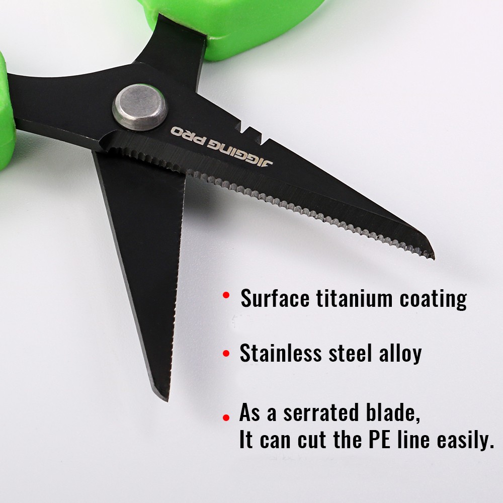 Το νέο ψαλίδι ψαρέματος Jigging Pro ήρθε για να γίνει το απαραίτητο εργαλείο κάθε ψαρά. Με λεπίδα από ανοξείδωτο χάλυβα και επίστρωση τιτανίου, προσφέρει ακριβή και καθαρή κοπή ακόμα και στο πιο δύσκολο PE νήμα.