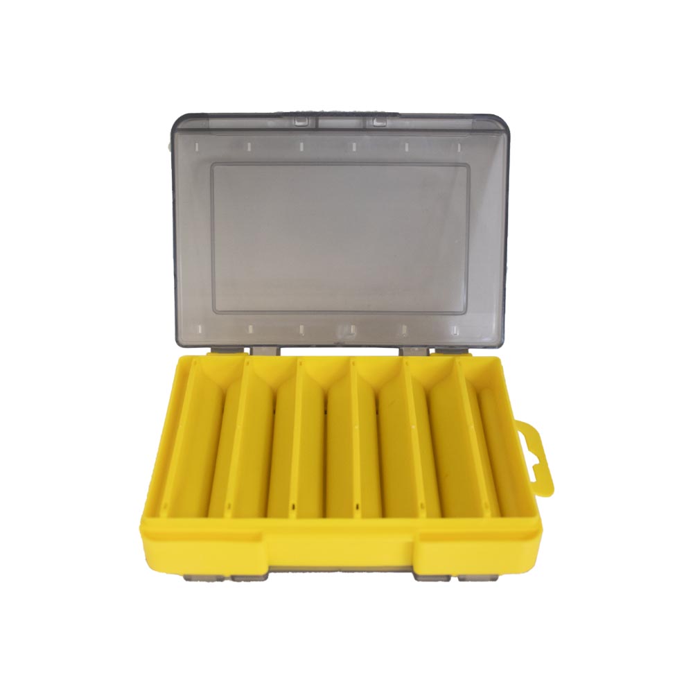 Η διπλής όψης κατασκευή της επιτρέπει την ασφαλή αποθήκευση έως και 12 τεχνητών δολωμάτων μήκους έως 8,5 εκατοστά, τοποθετημένων με τρόπο ώστε να μην χτυπιούνται μεταξύ τους και να μην μπλέκονται αγκίστρια ή σαλαγκιές. Οι θήκες διαθέτουν τριγωνικό σχήμα, αξιοποιώντας πλήρως τον διαθέσιμο χώρο και κρατώντας κάθε τεχνητό σταθερό στη θέση του.