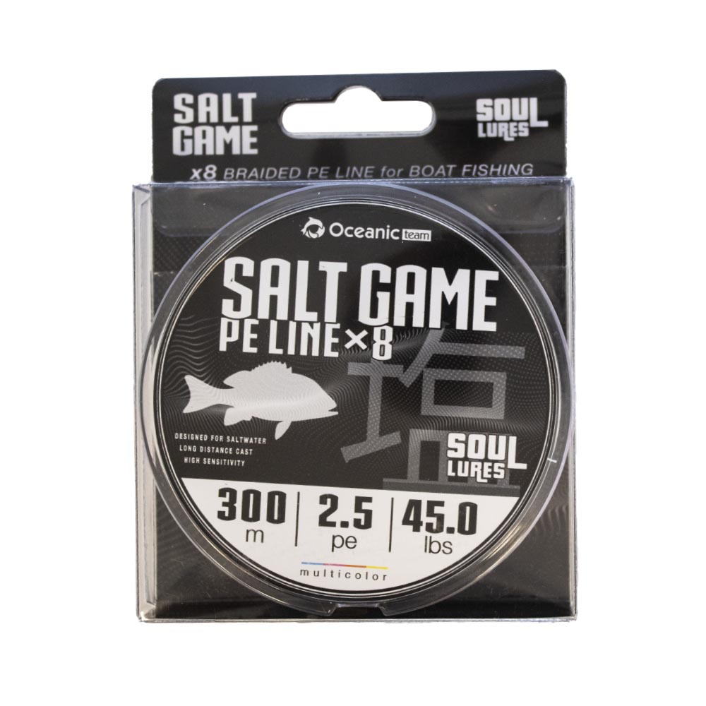 Το Oceanic Team Salt Game Braid X8 είναι ένα κορυφαίο νήμα οκτώ κλώνων (X8), ειδικά σχεδιασμένο για ψάρεμα στη θάλασσα. Με μήκος 300 m, προσφέρει άφθονη χωρητικότητα για μηχανισμούς spinning, casting και jigging.